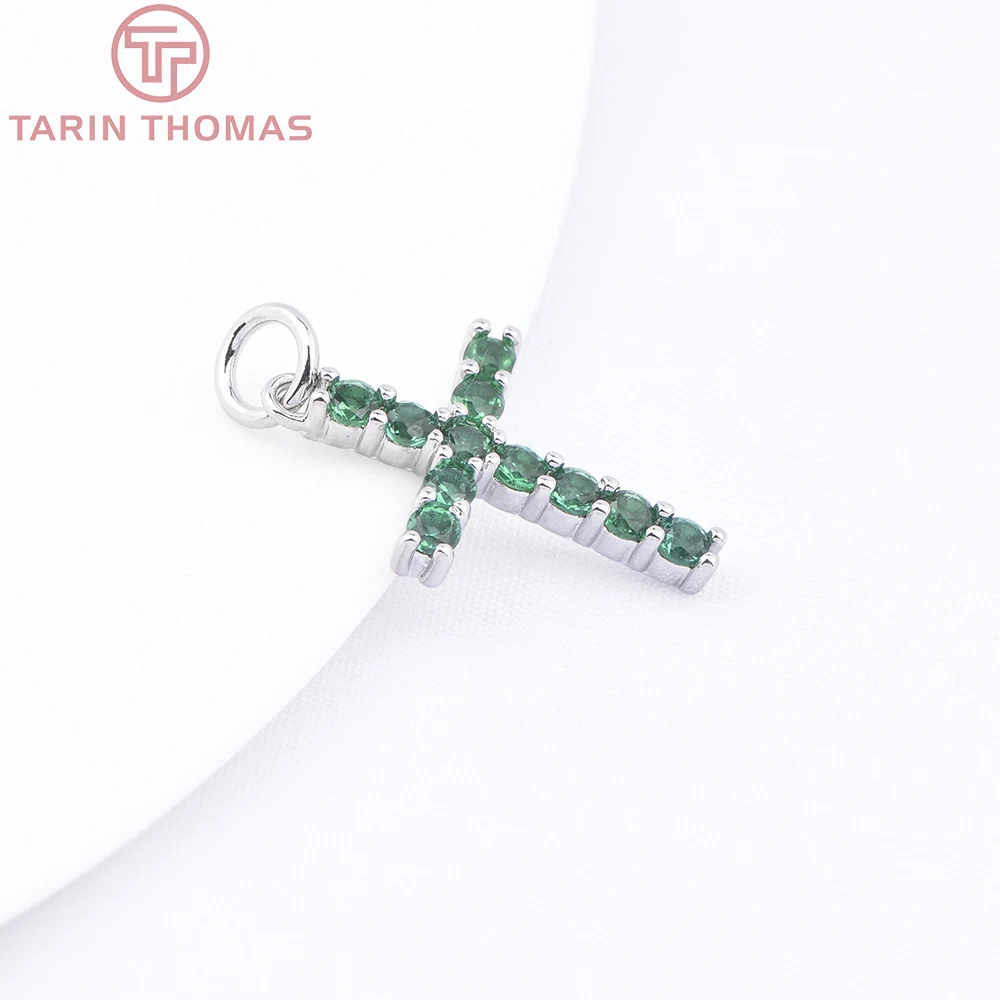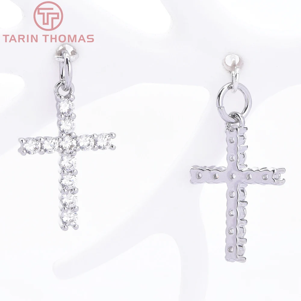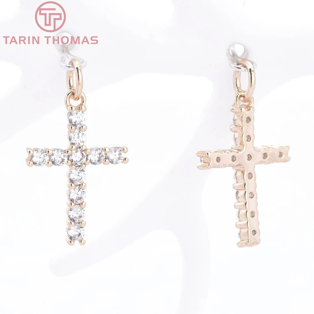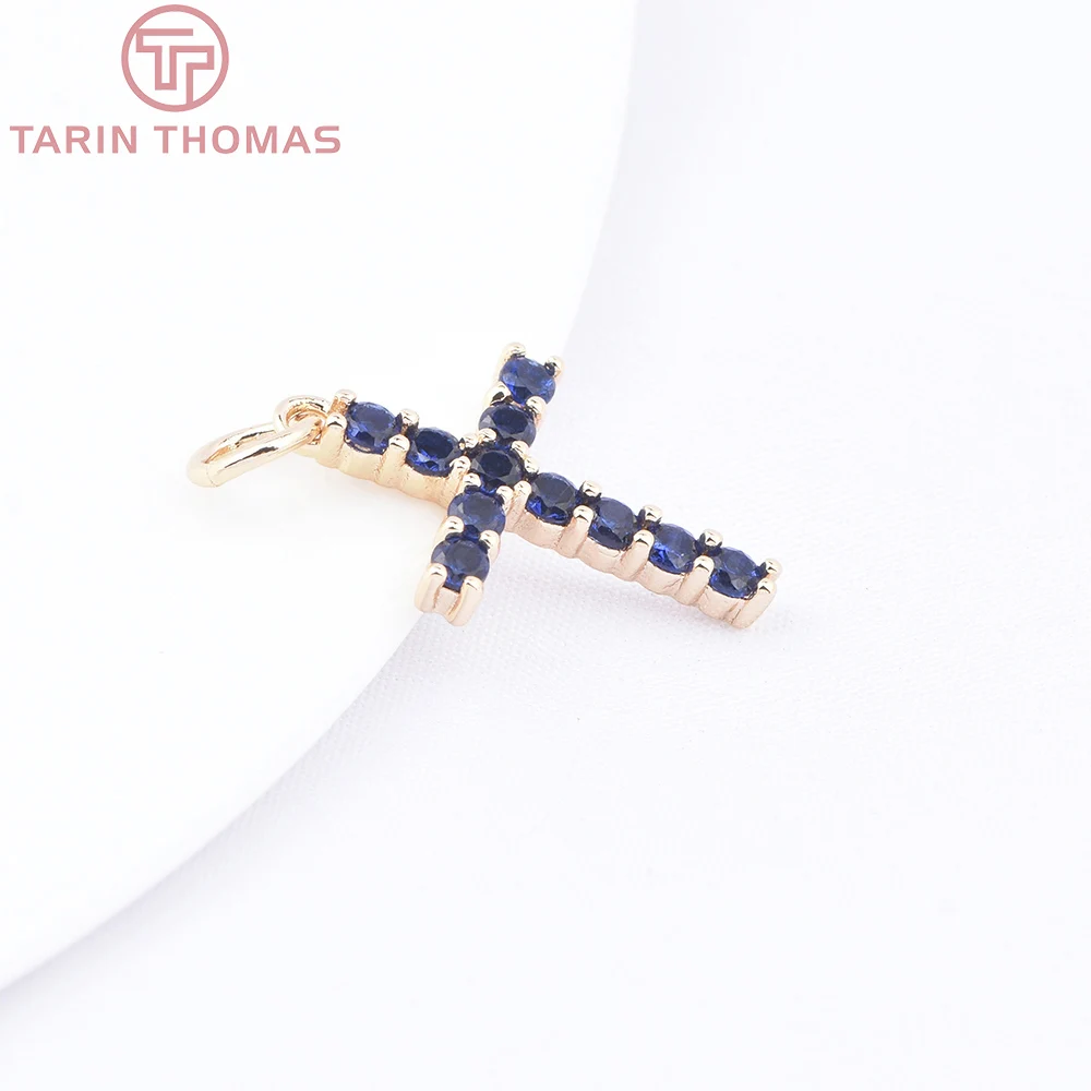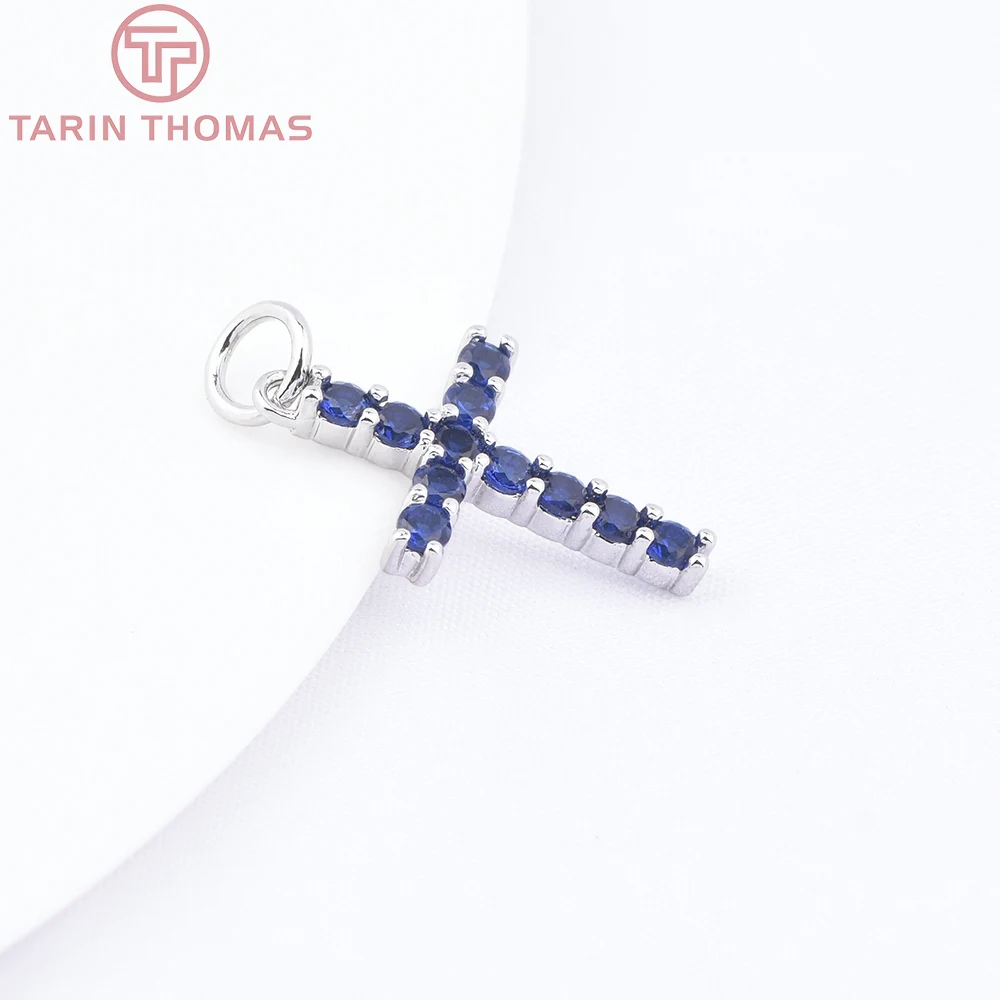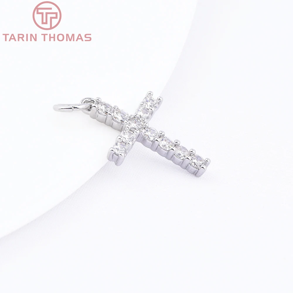 Each of the four brass pendants features a classic cross motif adorned with sparkling zircon accents, available in both warm gold and cool platinum finishes. Measuring 12x18.5mm with a 3mm hole, these fashion-forward charms are perfectly proportioned for bracelets, necklaces, and mixed-media projects. Crafted from durable brass with premium zircon detailing, they deliver timeless elegance with contemporary sparkle.