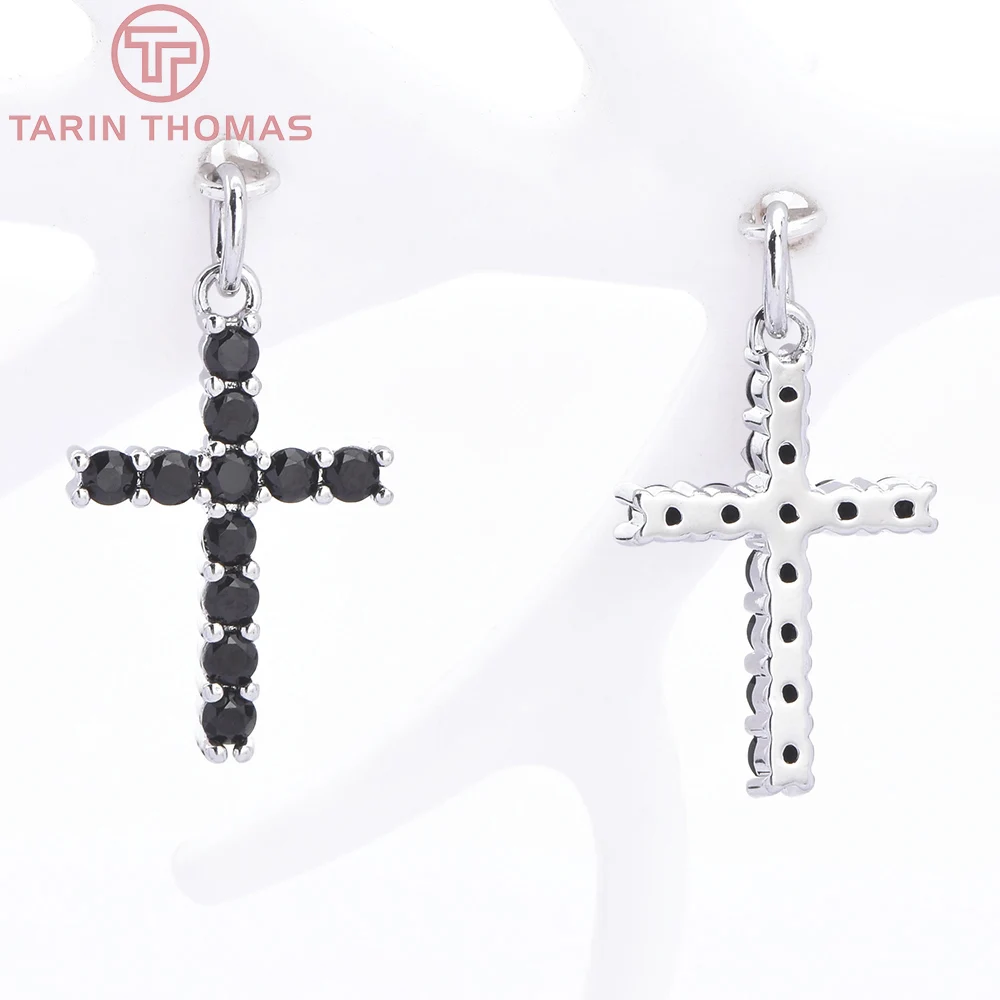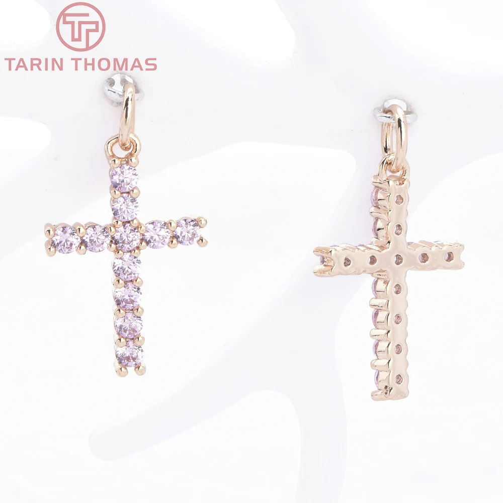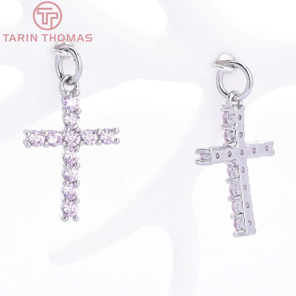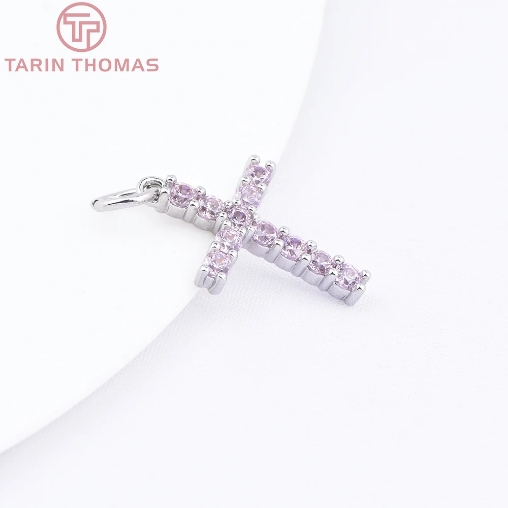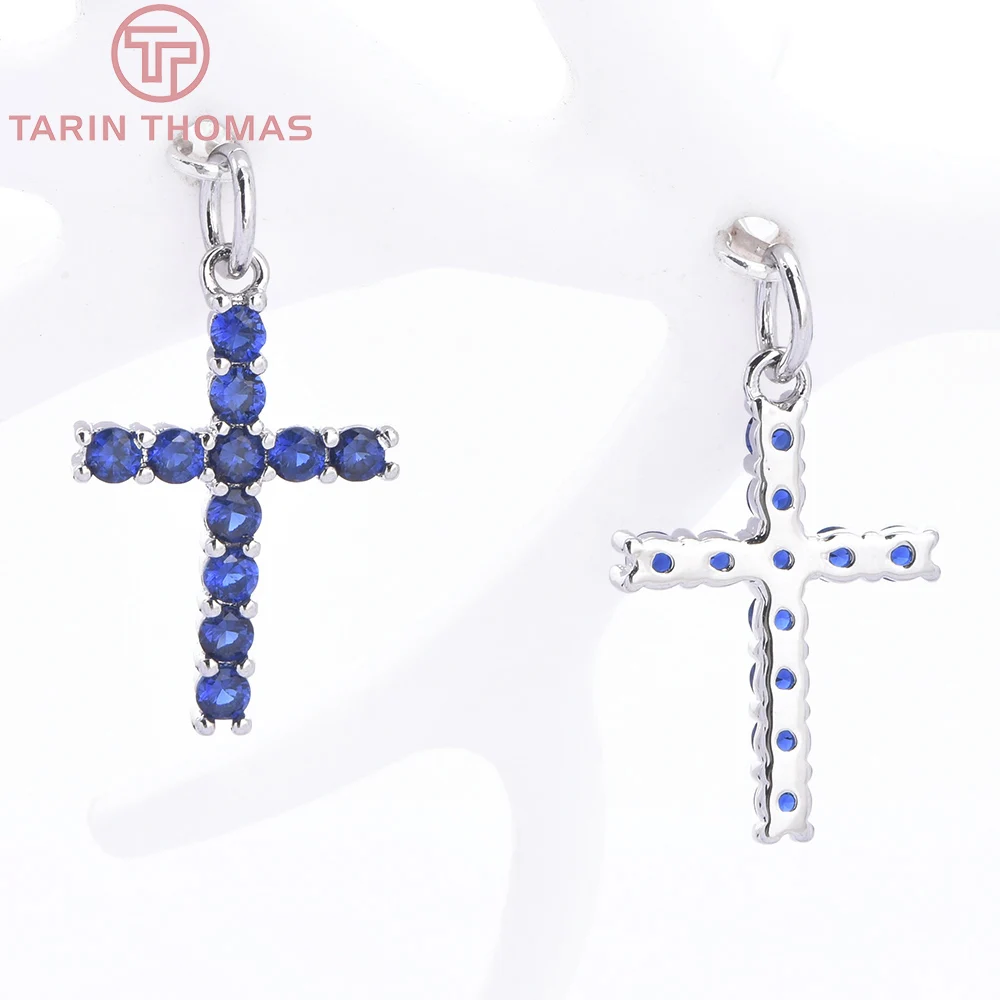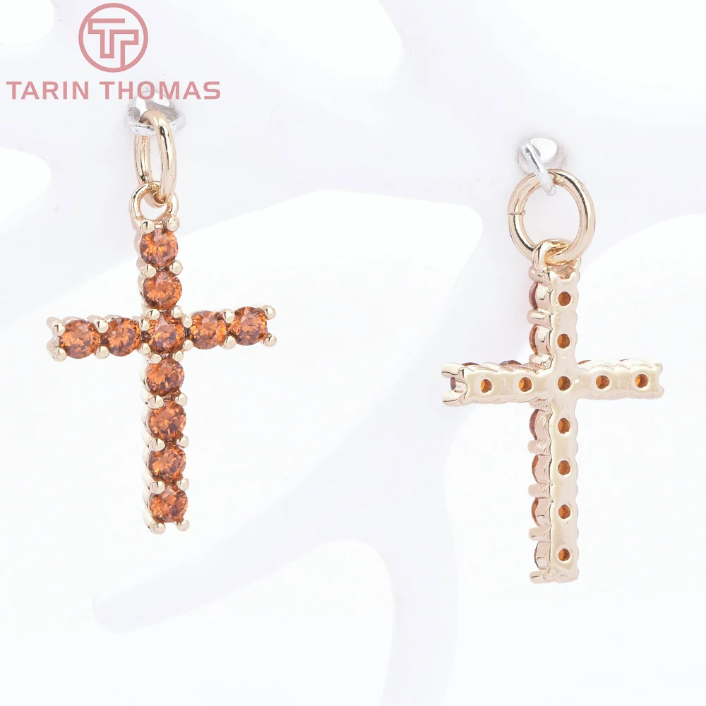 Each of the four brass pendants features a classic cross motif adorned with sparkling zircon accents, available in both warm gold and cool platinum finishes. Measuring 12x18.5mm with a 3mm hole, these fashion-forward charms are perfectly proportioned for bracelets, necklaces, and mixed-media projects. Crafted from durable brass with premium zircon detailing, they deliver timeless elegance with contemporary sparkle.